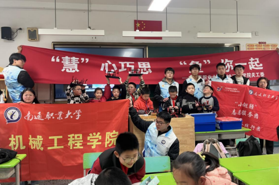 科技是未来的船,教育是扬起的帆,而代代相传的师者匠心,永远是托起船帆的风。活动最后,志愿者与孩子们一起合影留念,记录下这难忘的时刻。孩子们脸上洋溢着快乐的笑容,手中的“慧鱼”模型也成为了他们科技探索之旅的美好见证。未来,南通职业大学机械工程学院关工委将继续开展此类活动,为更多孩子带去科技的种子,助力他们的科技梦想生根发芽。