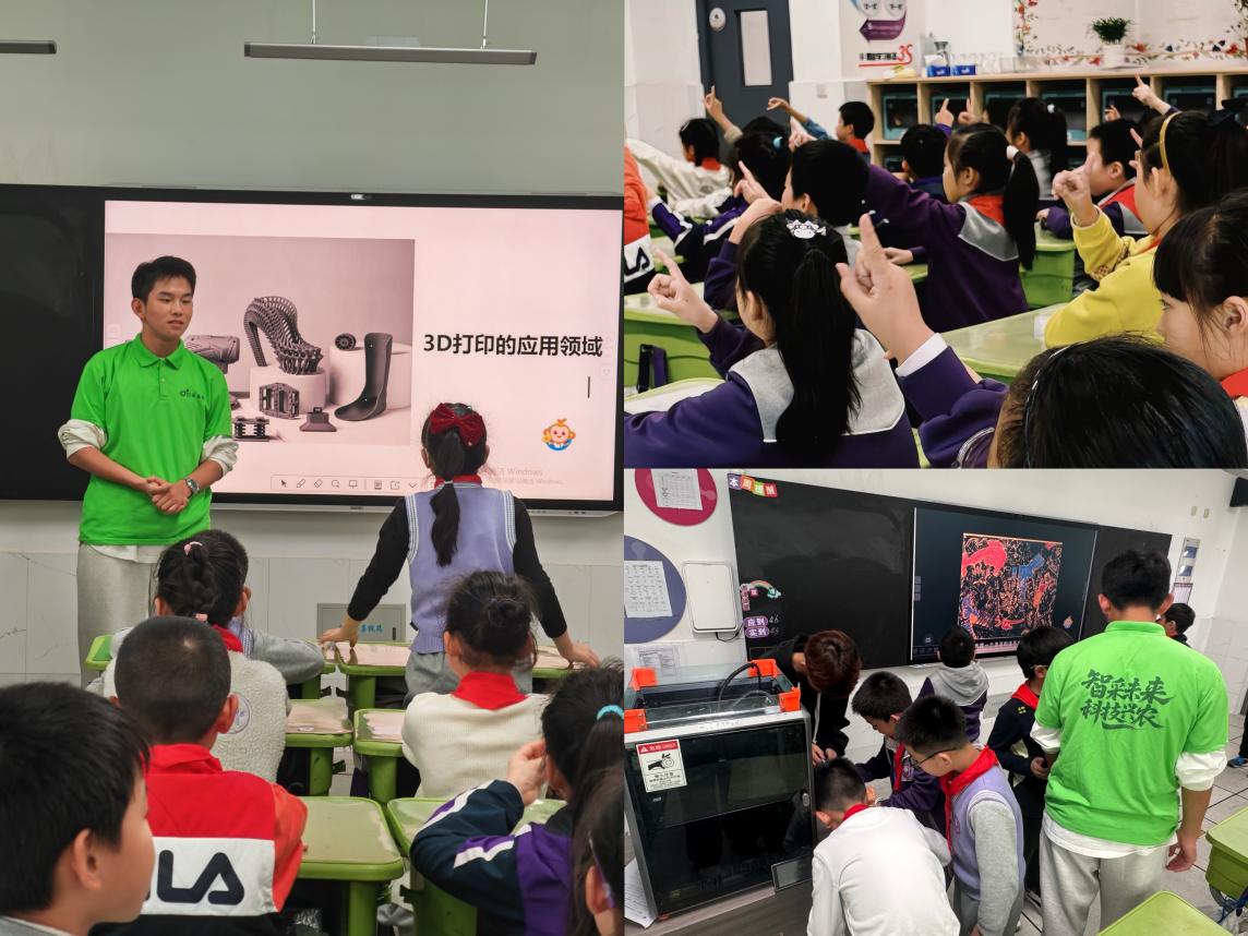 活动现场,学院3D打印社团的成员化身“科技导师”,带领小学生们近距离感受3D打印技术的魅力。从创意设计的雏形构思,到熔融耗材的层层堆叠,孩子们在社团成员的耐心指导下亲手操作设备,见证平面想法转化为立体模型的奇妙过程。这场沉浸式实践不仅让孩子们直观体验了科技与艺术的碰撞,更在他们心中埋下了创新智造的种子,激发了对前沿技术的探索热情。