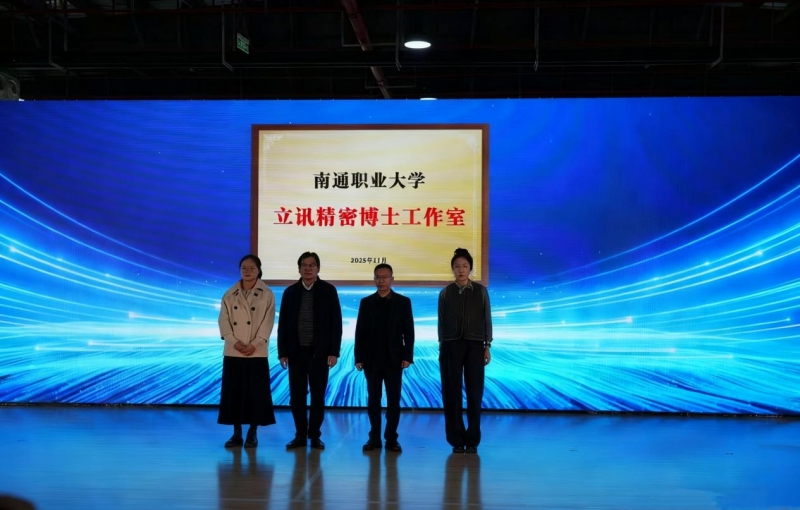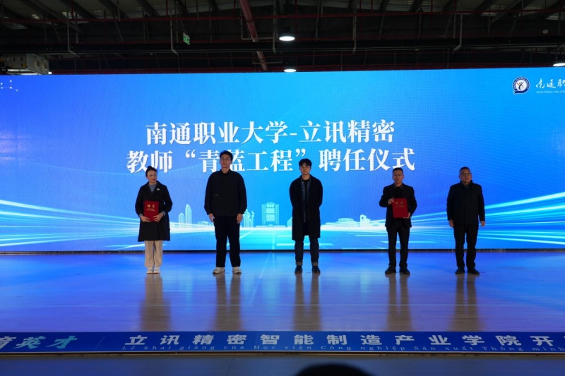 随后,徐胜副校长与立讯产业集团代表共同为企业“博士工作室”揭牌,标志着校企高层次人才协同创新迈入实质阶段。该工作室的设立,将充分发挥南通职业大学高层次人才智力优势,聚焦企业智能制造领域实际技术痛点与发展瓶颈开展定向攻关,成为深化“产学研用”一体化融合、推动科技成果转化落地的关键载体。活动现场同步举行了校企“青蓝工程”聘任仪式与师徒结对环节。通过校企双方优秀教师、企业技术骨干的双向结对,构建起“师德传承+技艺精进+创新赋能”的三维培养体系,既实现了行业经验、教学资源的深度共享,又推动了智能制造领域的技艺传承与创新突破。