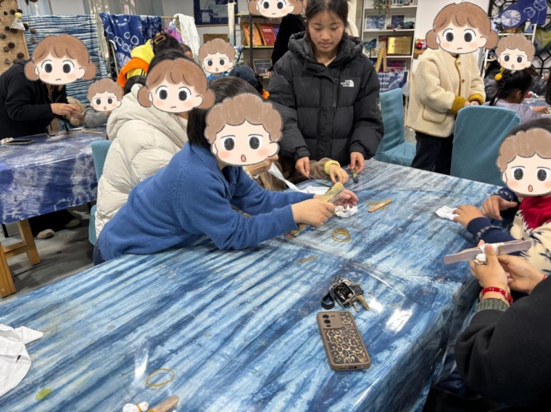扎染过程中,当白布经染料浸润,浮现出独一无二的花纹时,孩子们纷纷举着作品欢呼。